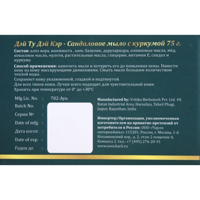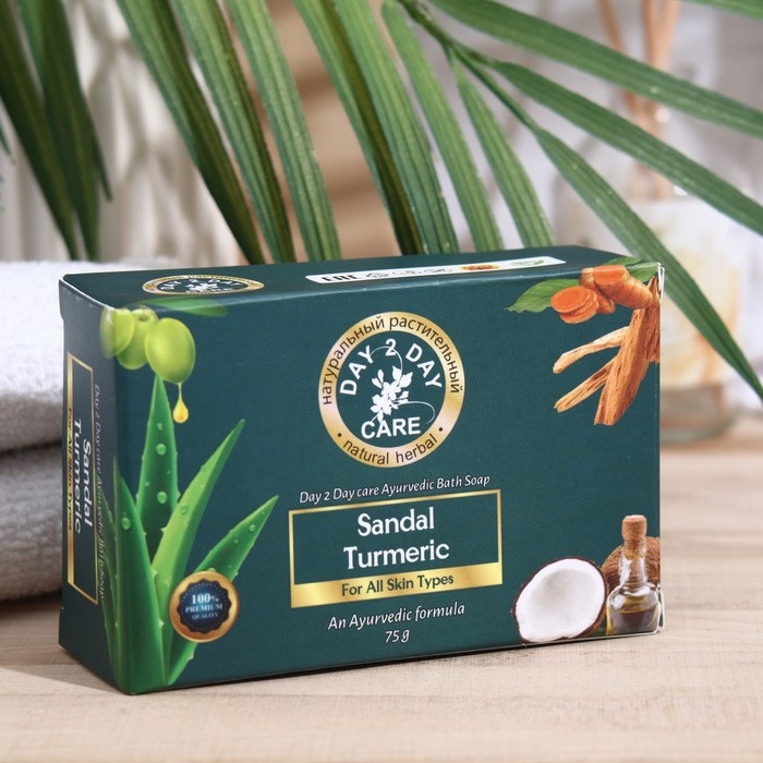 Мыло аюрведическое натуральное Дэй Ту Дэй Кэр сандаловое с куркумой, 75 г