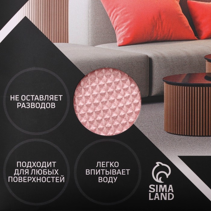 Благодаря нитям из микрофибры салфетка имеет преимущества перед другими изделиями из искусственных или натуральных материалов. Изделие подходит для любых поверхностей.