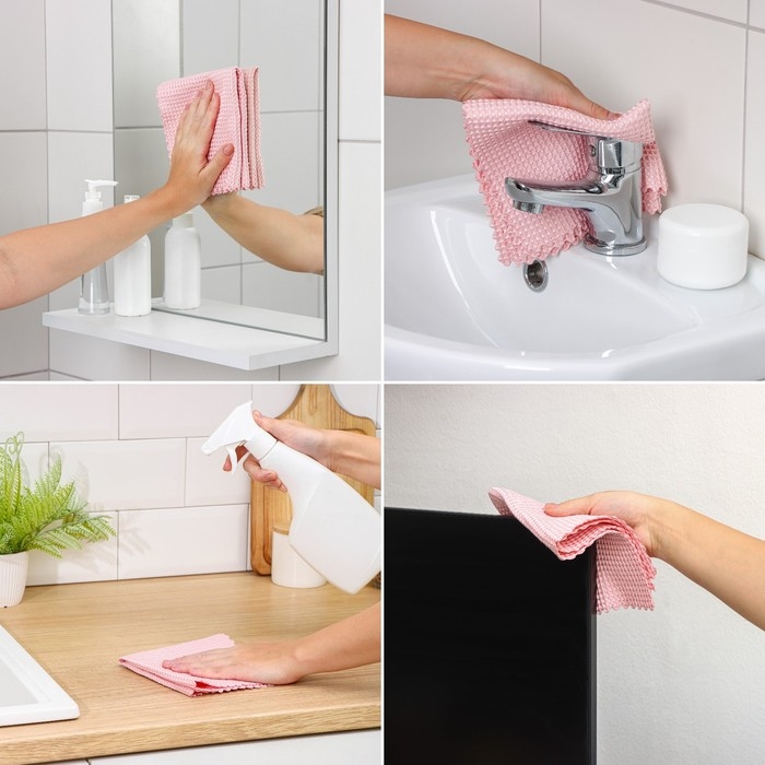 Салфетка имеет гладкую фактуру, которая позволяет очистить поверхность, не прикладывая особых усилий. Её также можно использовать для бокалов, фужеров, люстр, автомобильных стёкол и других предметов, требующих ухода.
