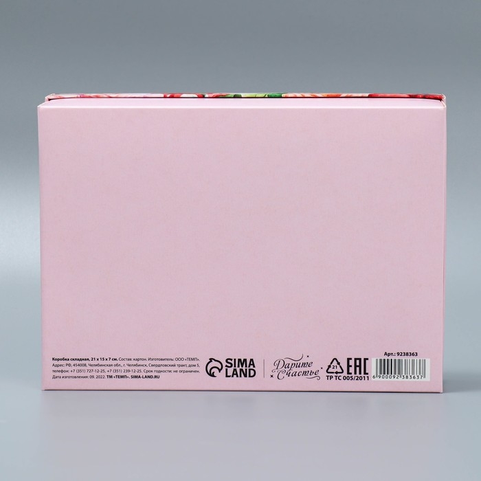 Коробка подарочная складная, упаковка, «Цветы», 21 х 15 х 7 см