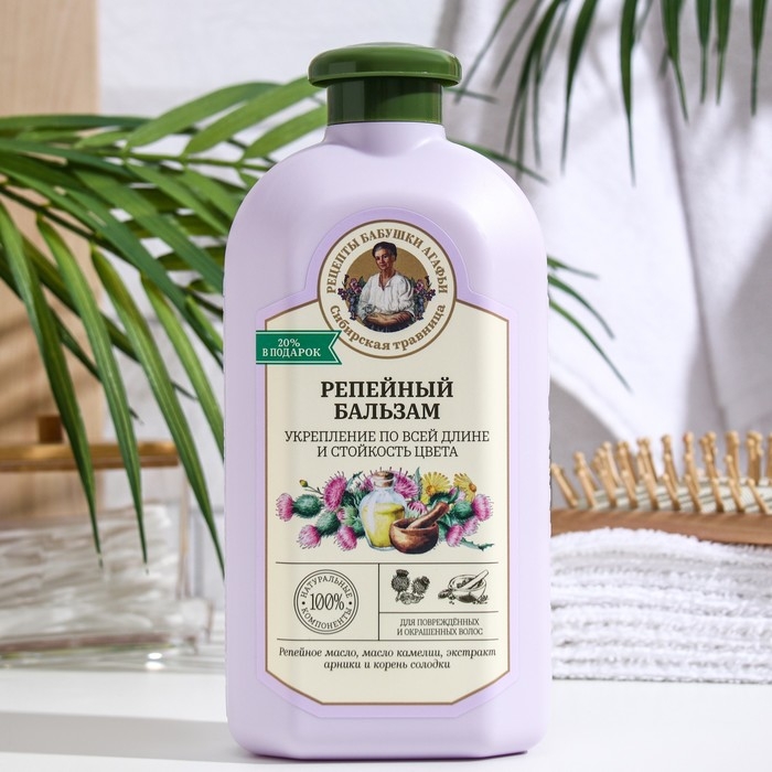 Бальзам для волос Рецепты бабушки Агафьи «Репейный», для поврежденных и окрашенных волос, 500 мл