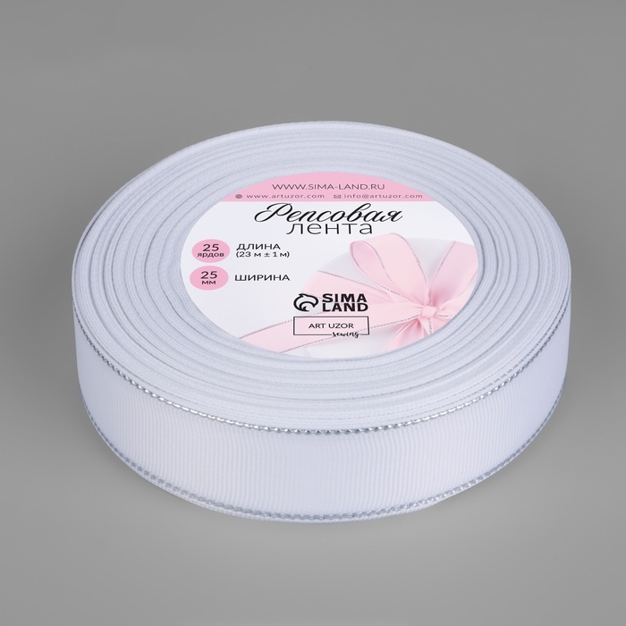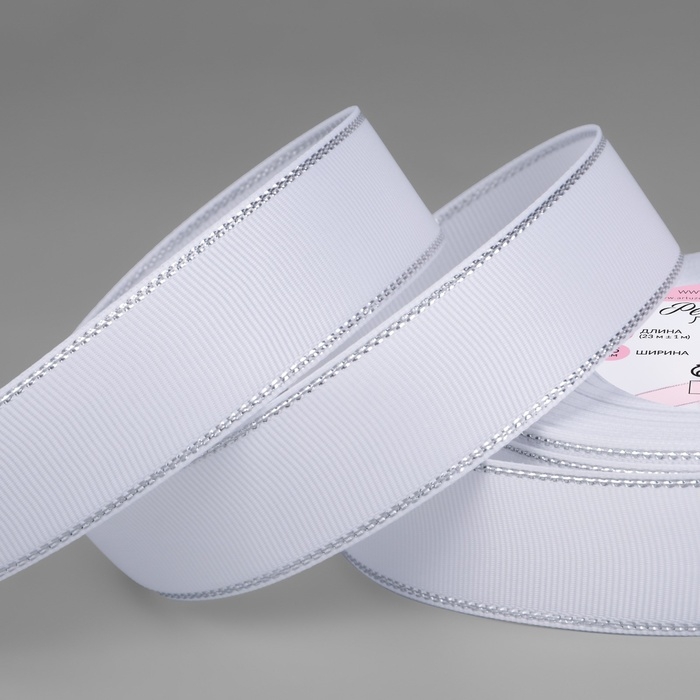 Лента репсовая «Серебряные нити», 25 мм × 23 ± 1 м, цвет белый №001