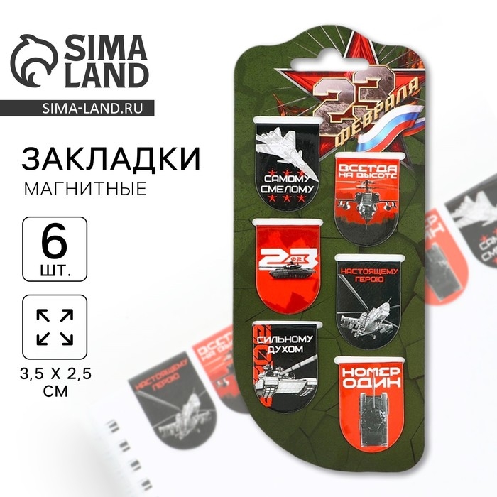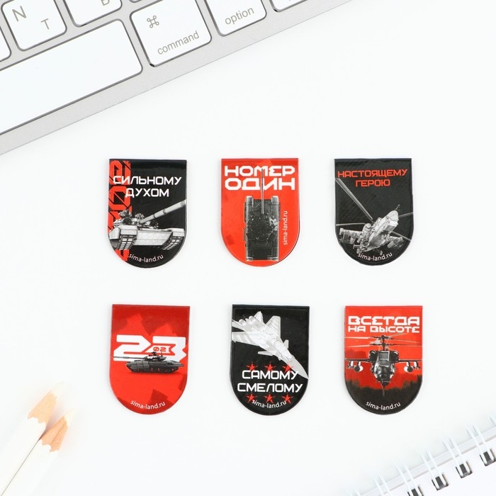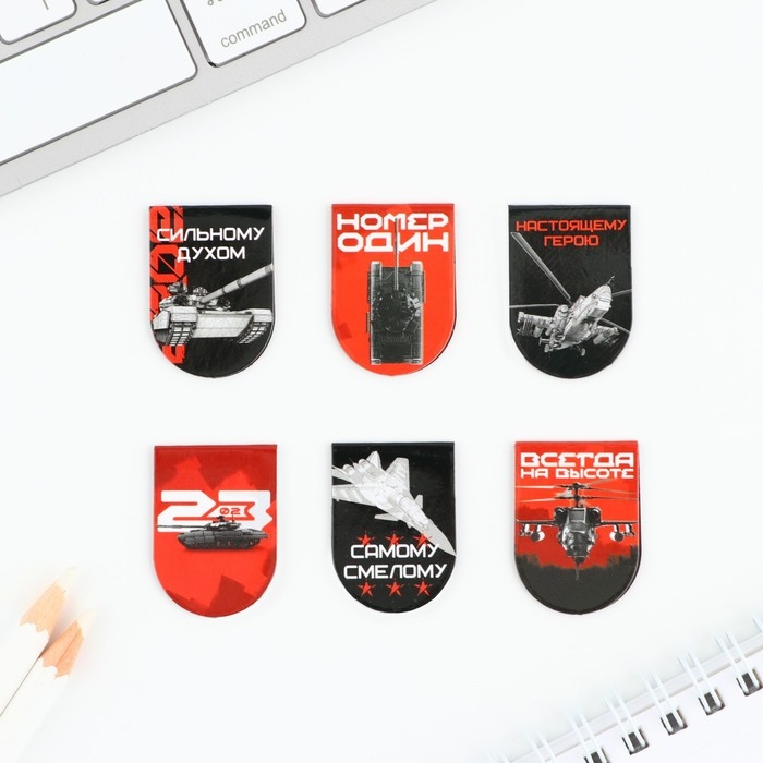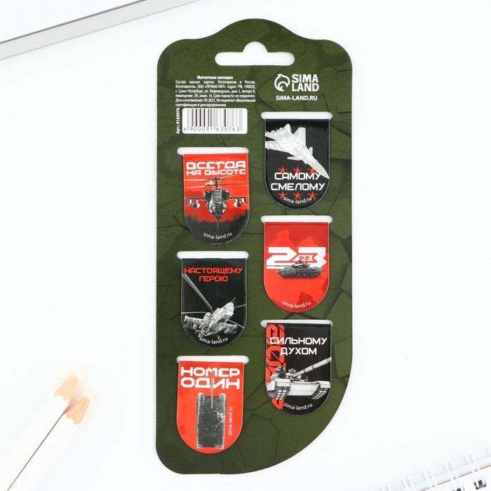 Магнитные закладки для книг, 4 шт. в открытке «Юному герою, с 23 февраля!»