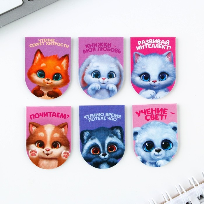 Закладки магнитные на подложке «Зверята», 6 шт