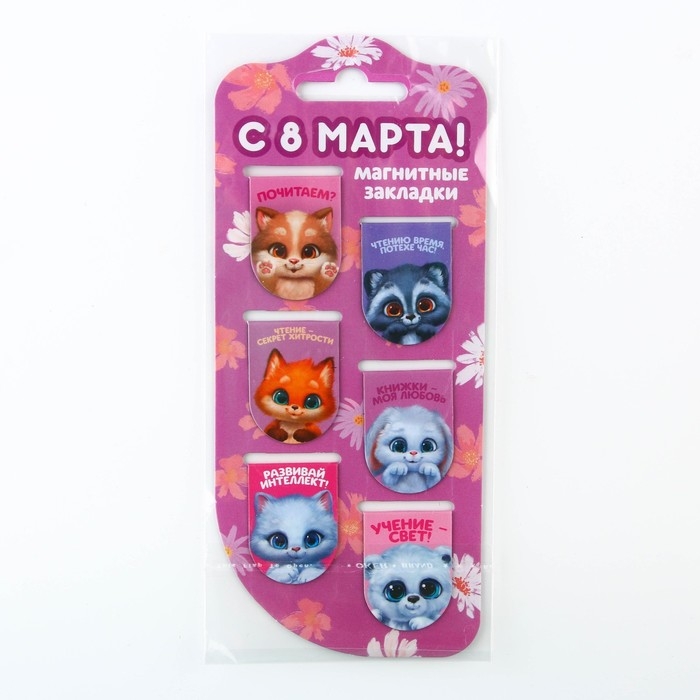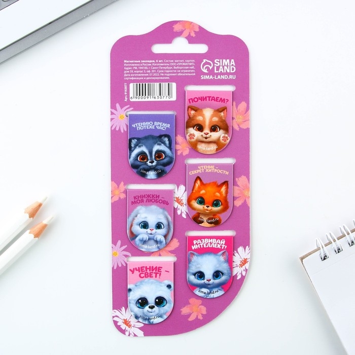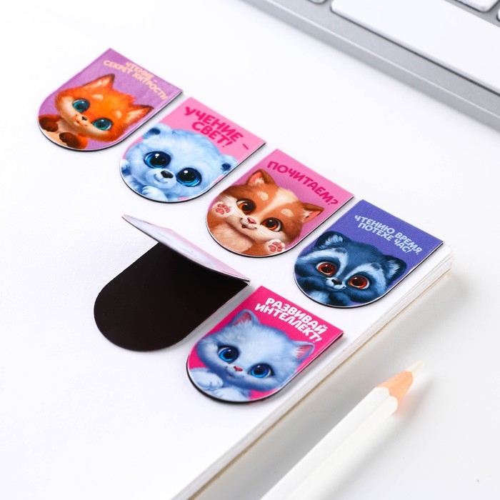 Закладки магнитные для книг, 6 шт «Котики»