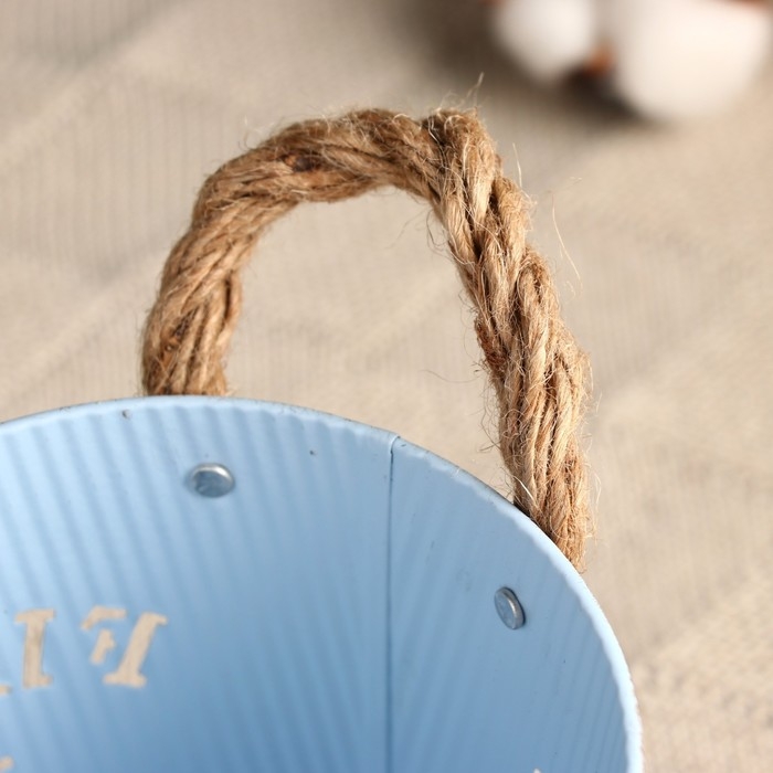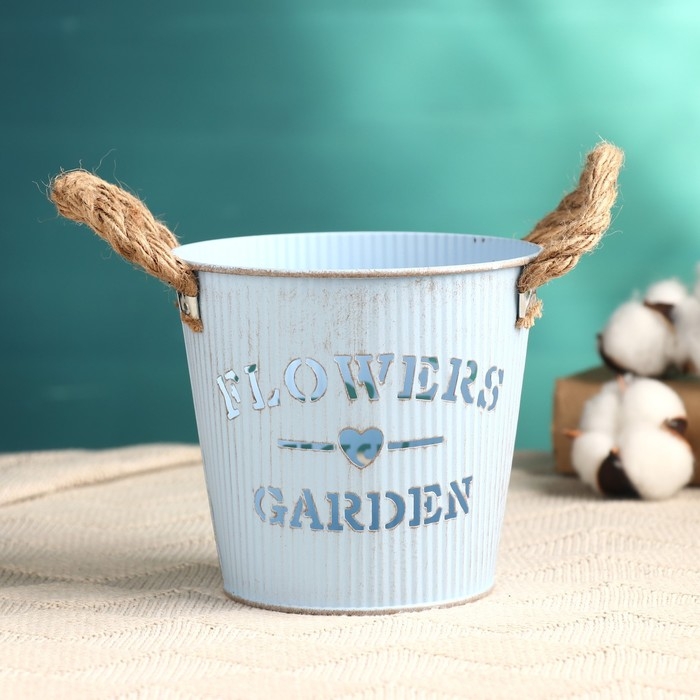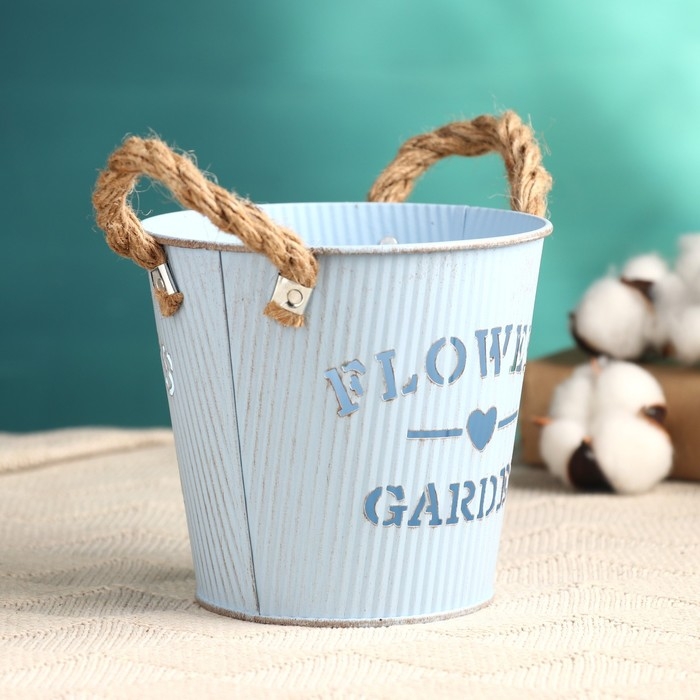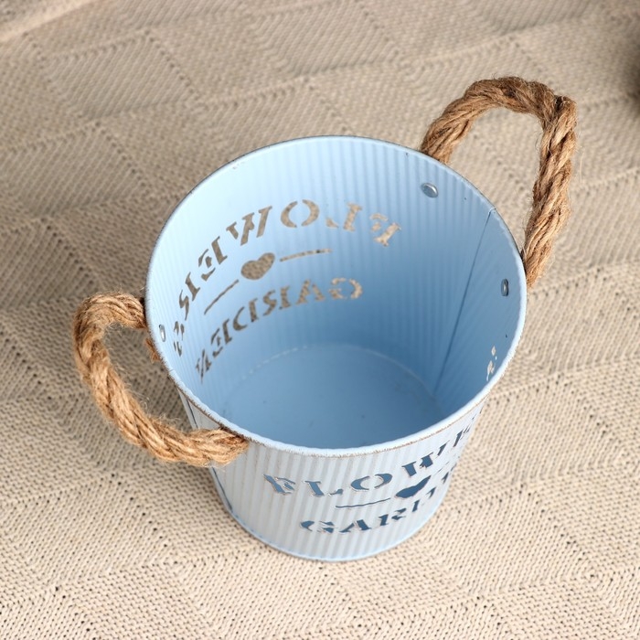 Кашпо "Ведерко цветочный сад" голубое, 13х13х12см