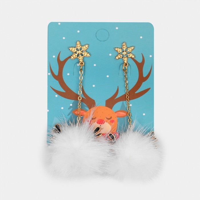 Новый год! Серьги новогодние «Шарики» рожки оленя, цвет чёрно-белый в золоте