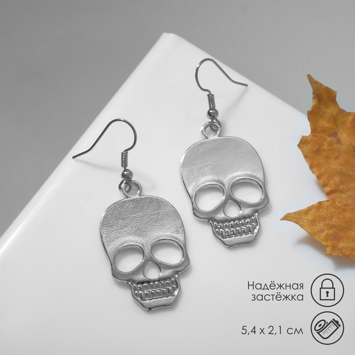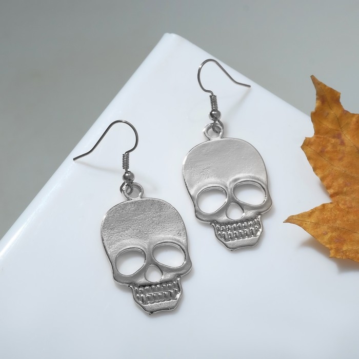 Серьги металл «Готика» череп, цвет серебро