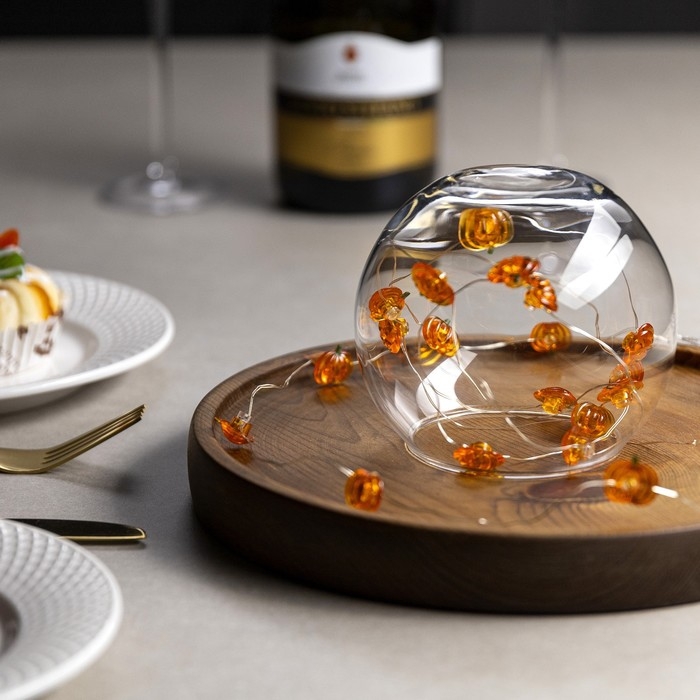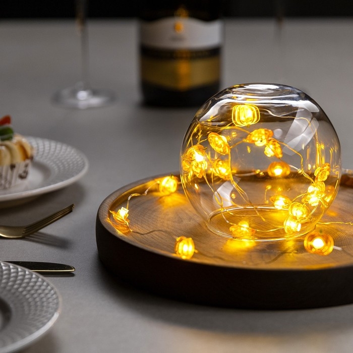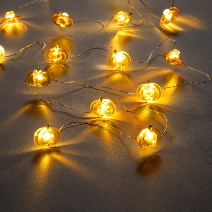 Гирлянда «Нить» 2 м роса с насадками «Тыква», IP20, серебристая нить, 20 LED, свечение тёплое белое, 2 режима, ААх2