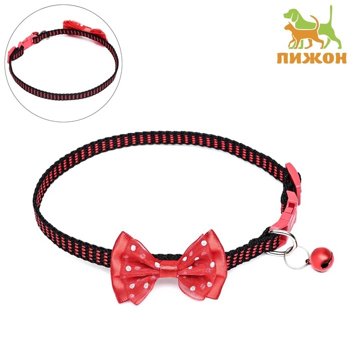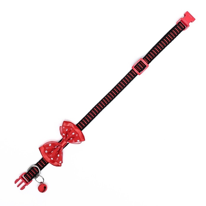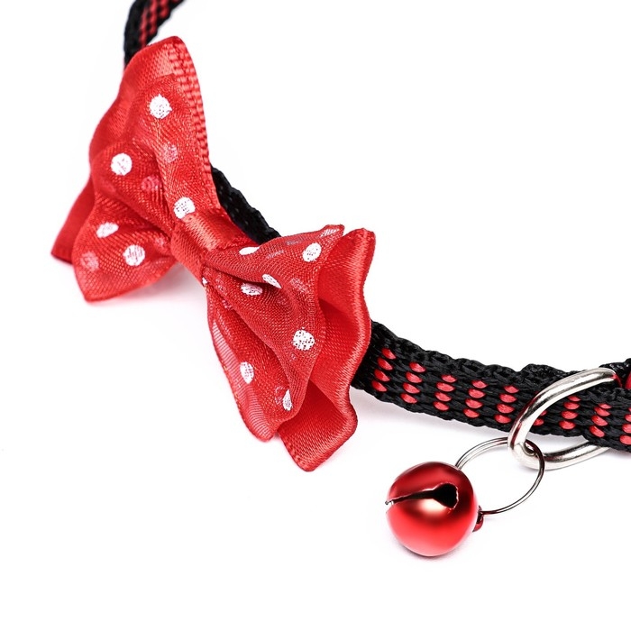 Ошейник текстильный с бантиком и бубенчиком, 30 х 1 см, красный