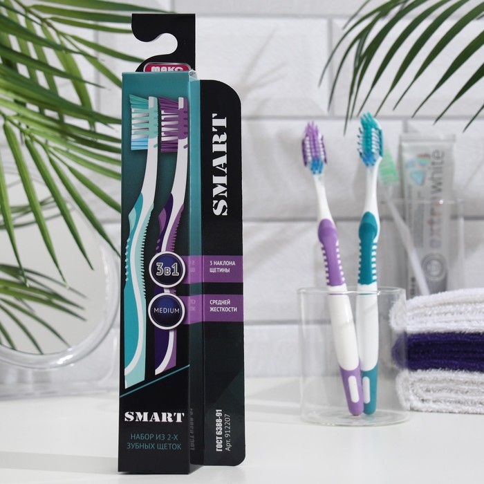 Зубная щётка «Смарт» средней жесткости, бирюзовый, 2 шт.