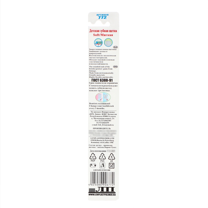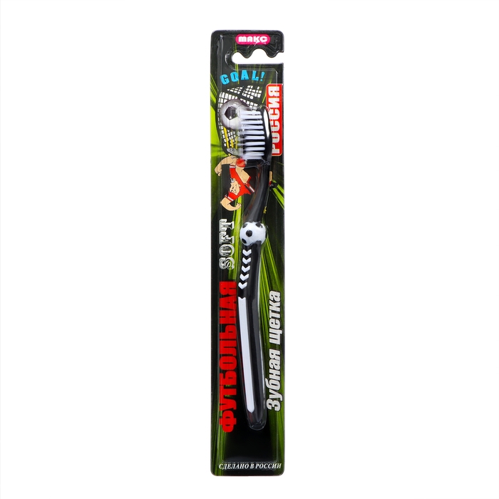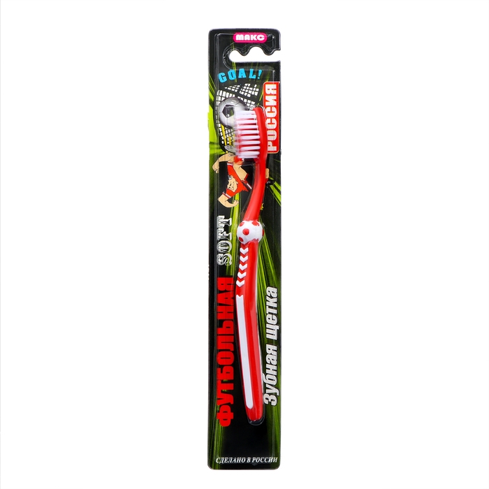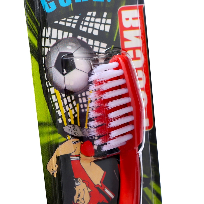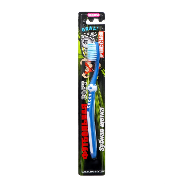 Зубная щётка детская «Футбольная» мягкой жесткости эффективно удалит налёт и очистит полость рта ребенка, не травмируя её при этом. Специальные щетинки подстраиваются под контуры зубов, проникают даже в труднодоступные места.