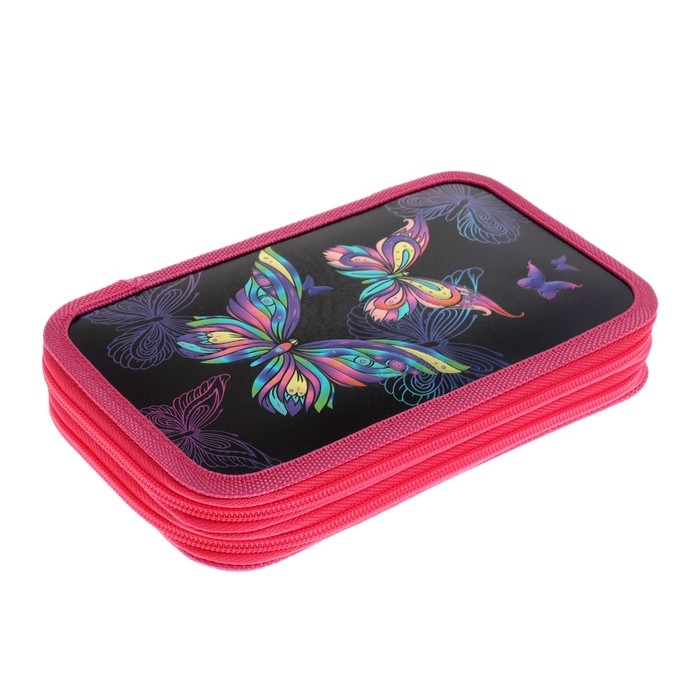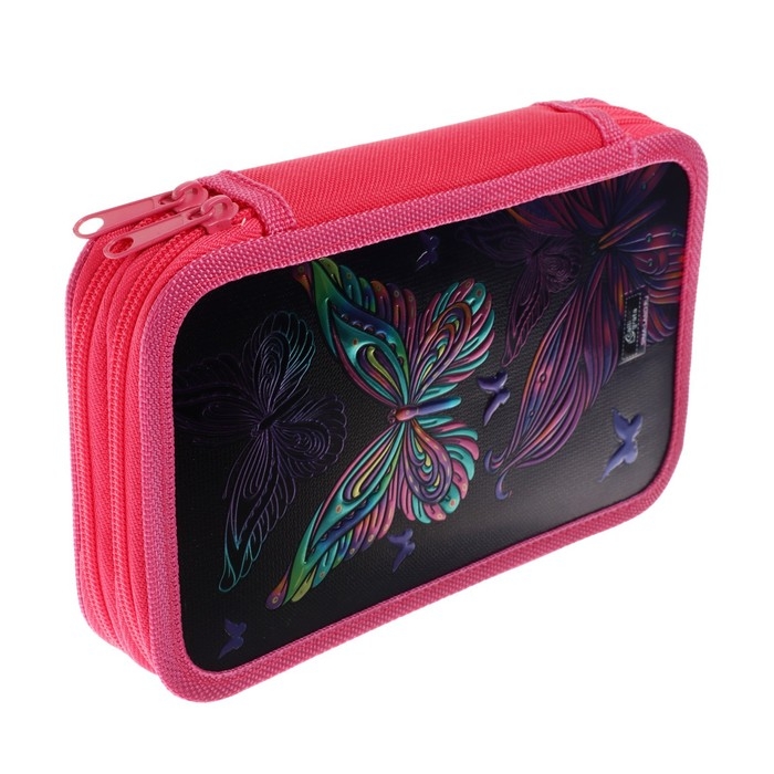 Пенал 2 секции, 125 х 205 х 40 мм, 81П26/2 Calligrata "Бабочки" (объемный 3D-рисунок с эффектом металлика)