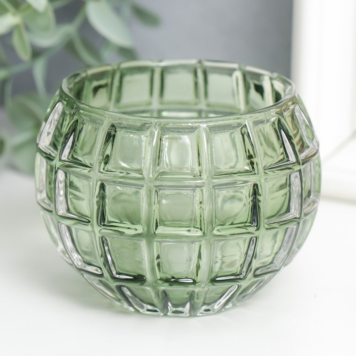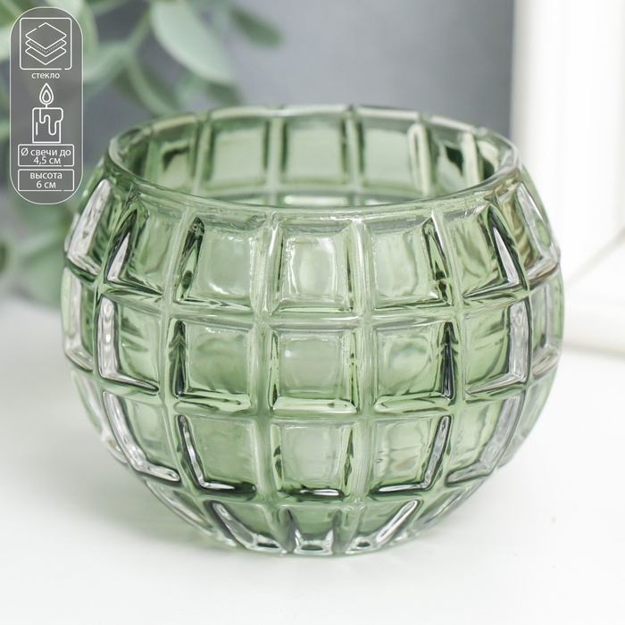 Подсвечник стекло "Бочонок" d-4,5 см изумруд 7,5х7,5х6 см