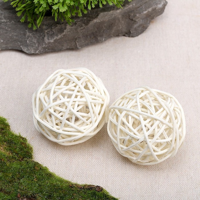 Шар декоративный из лианы, набор 2 шт., размер 1 шт. — 5 см, цвет белый