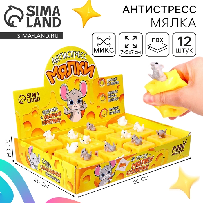 Антистресс сквиш мялка «Сырные прятки», цвета МИКС, в шоубоксе