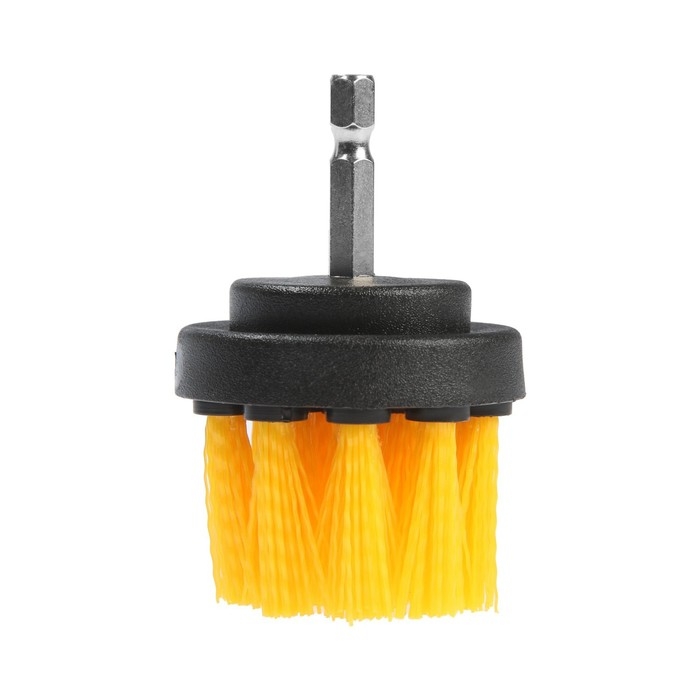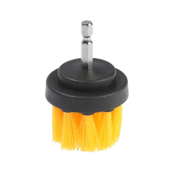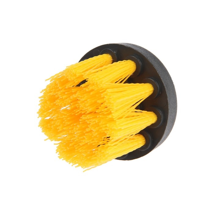 Корпус щётки выполнен из прочного пластика. Щетина выполнена из нейлона средней жёсткости. Диаметр щётки составляет 45 мм, высота 25 мм. Шестигранный хвостовик надёжно фиксируется в патроне инструмента.