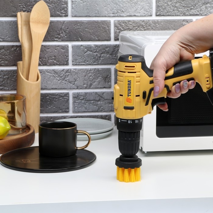 Насадка щётка ТУНДРА предназначена для совместного использования с шуруповёртом для отчистки поверхности от загрязнений.