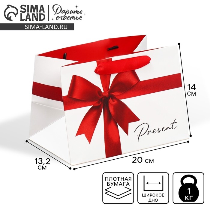 Пакет подарочный с широким дном, упаковка, «Подарок», 20 х 14 х 13.2 см