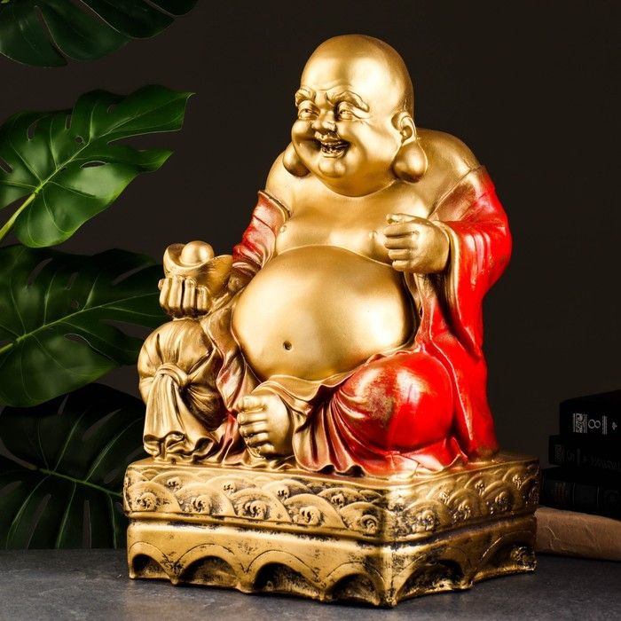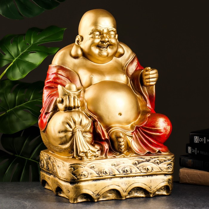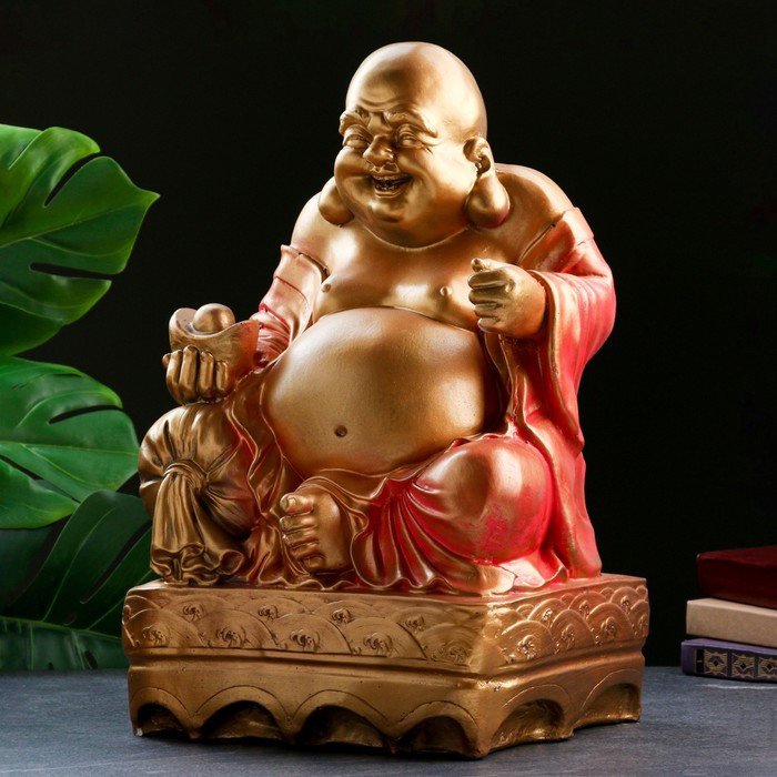 Копилка "Хотей сидя большой" бронза, красный, 32х25х51см