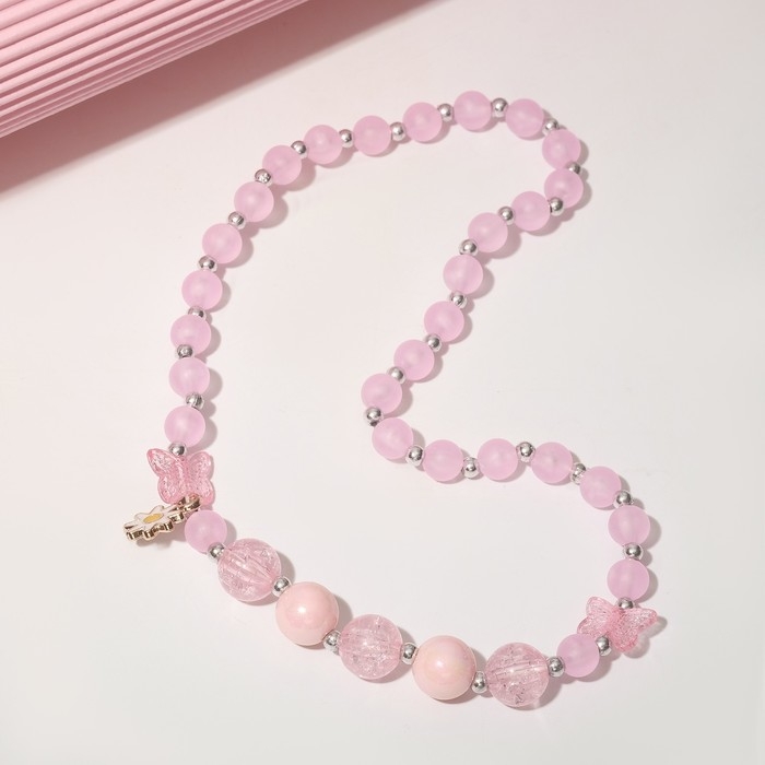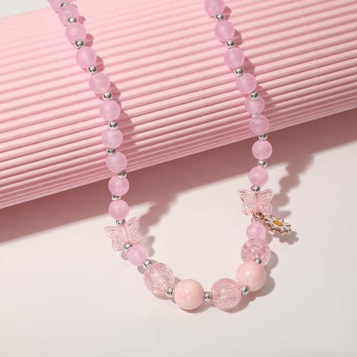 Бусы детские «Выбражулька» бабочка с ромашкой, цвет розовый