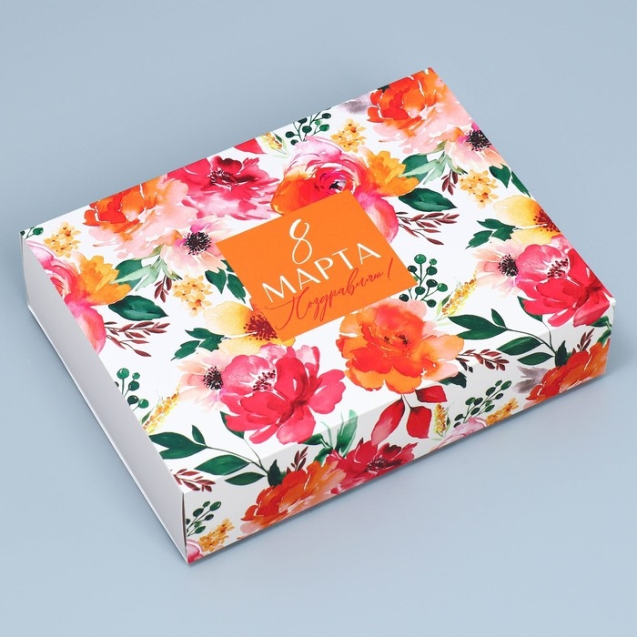 Коробка кондитерская, упаковка «Акварель», 8 марта, 20 х 15 х 5 см
