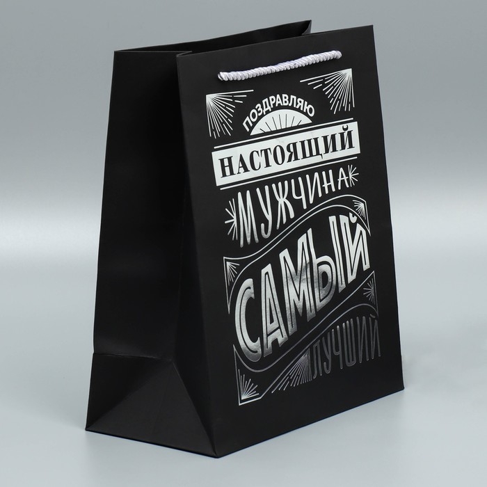Пакет подарочный, упаковка, «Настоящий мужчина», чёрный крафт, 23 х 27 х 11.5 см