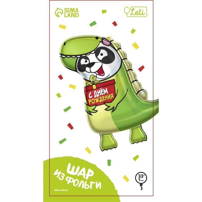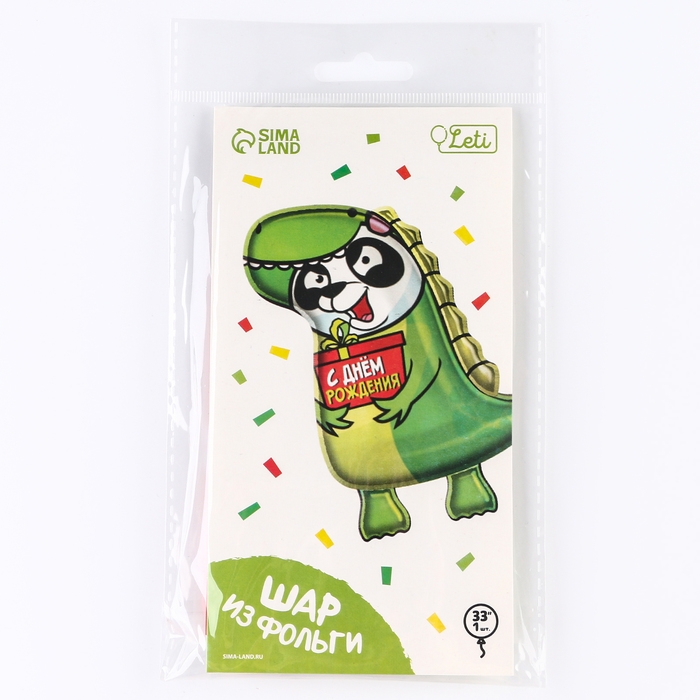 Фольгированный шар в виде панды в костюме динозавра станет отличным дополнением к подарку для ребёнка. На шаре есть надпись: «С днём рождения!». Несколькими шарами можно оформить помещение для детского праздника.