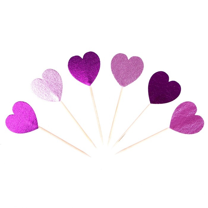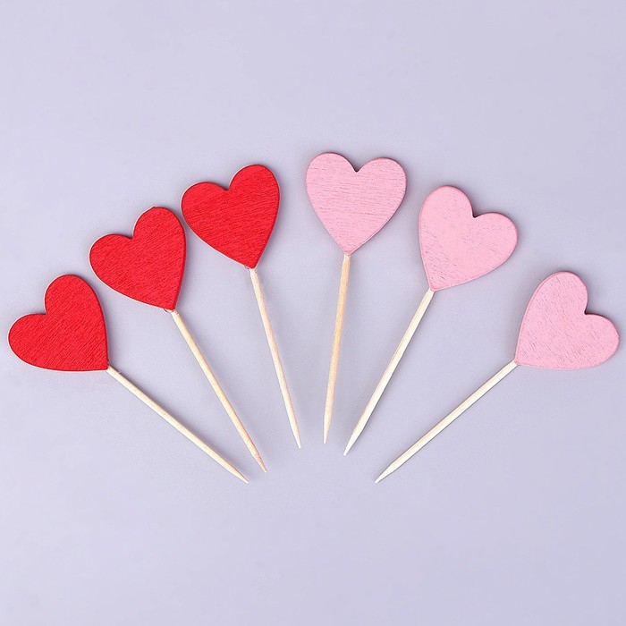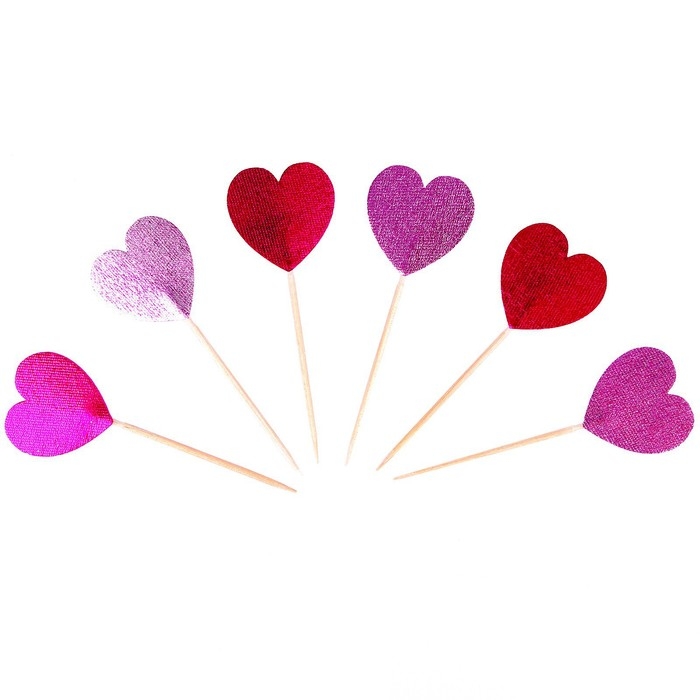 Шпажки сердечки, набор 6 шт, цвет МИКС