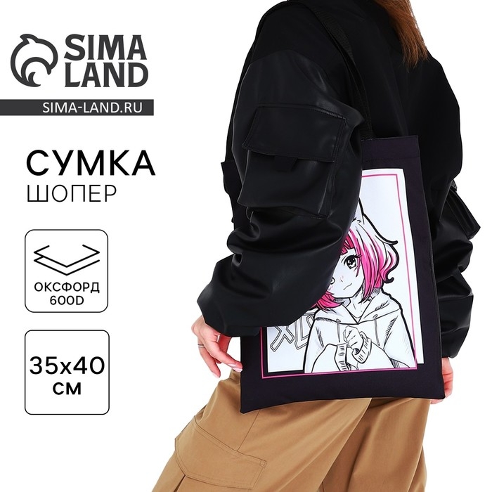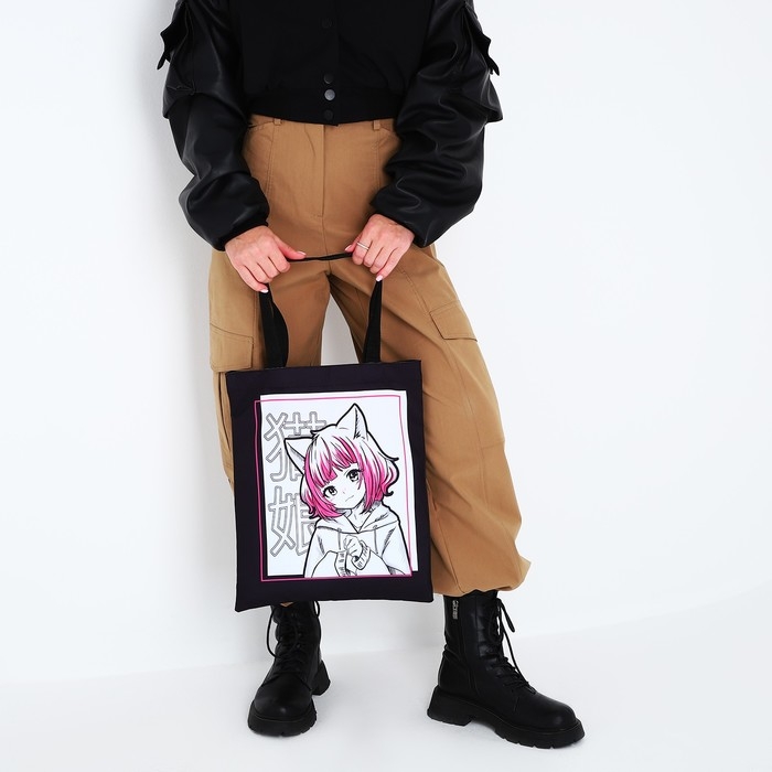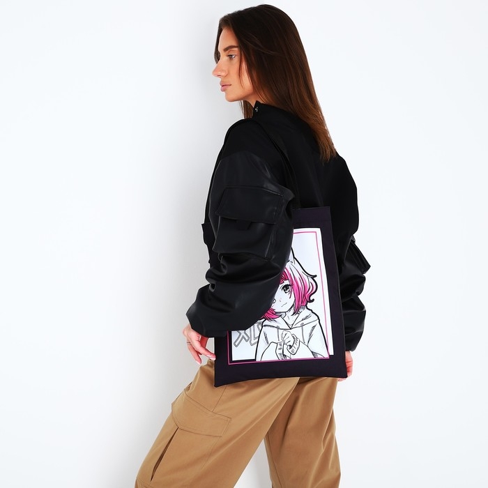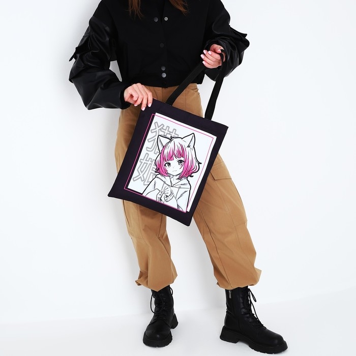 Шопер детский для девочки без застёжки, цвет чёрный/белый