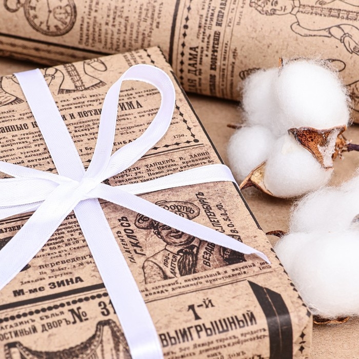Бумага упаковочная, крафт "Газета", 70х100 см, 1 лист