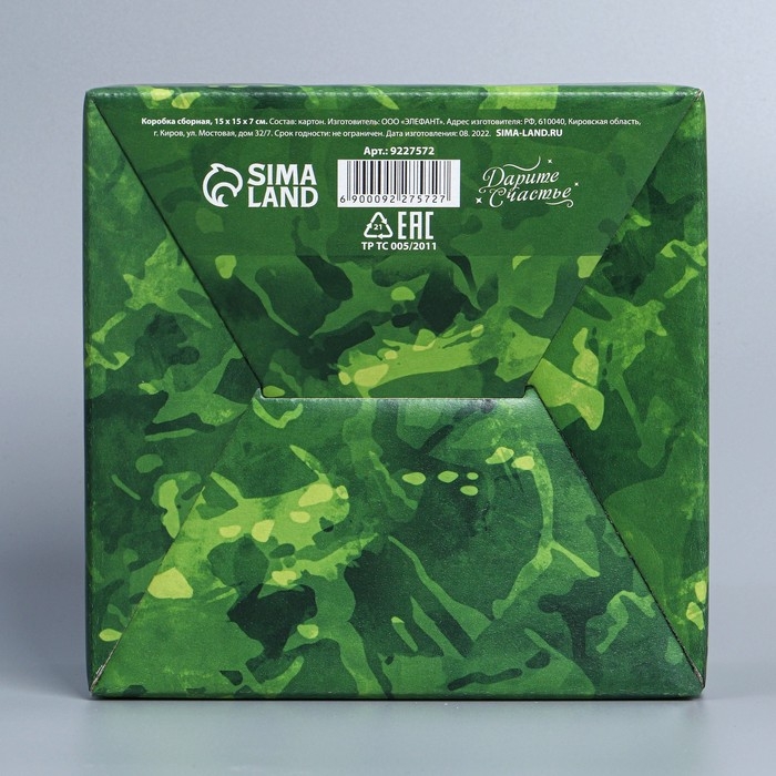 Коробка подарочная сборная, упаковка, «23 февраля», 15 х 15 х 7 см