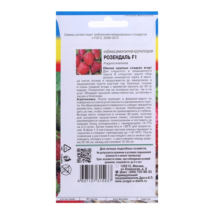Семена Клубника ремонтантная "Искушение", F1, 5 шт.