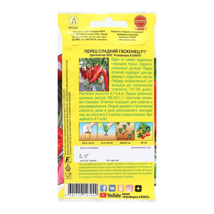 Семена Перец сладкий "Гасконец", F1, 0,1 г