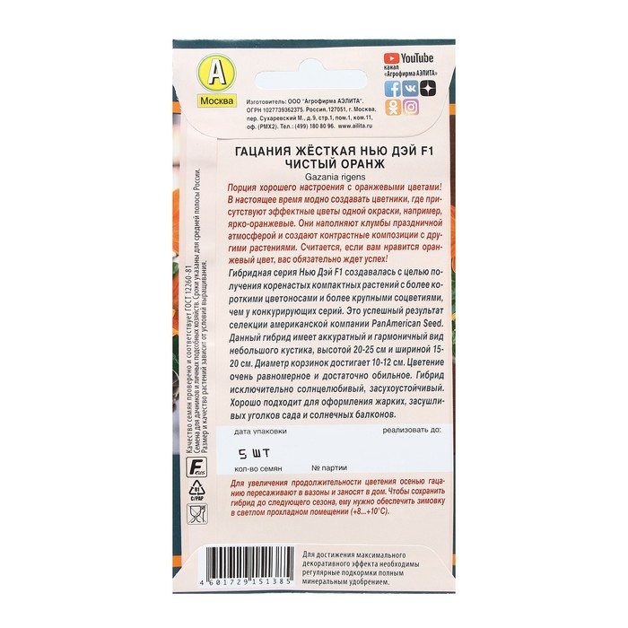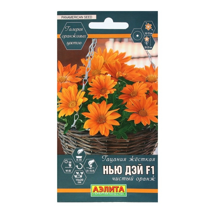 Семена Цветов Гацания "Нью Дэй", F1, чистый оранж, 5 шт