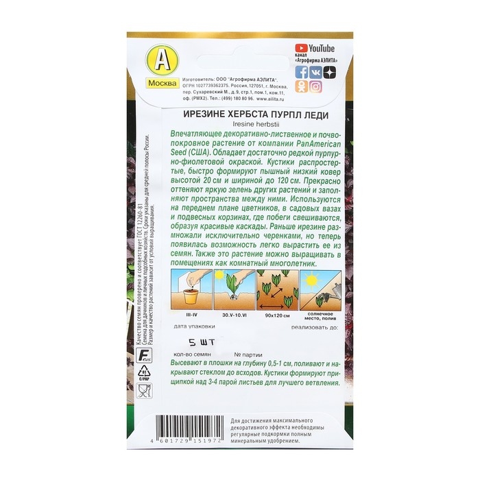 Семена Цветов Ирезине "Пурпл леди", 5 шт