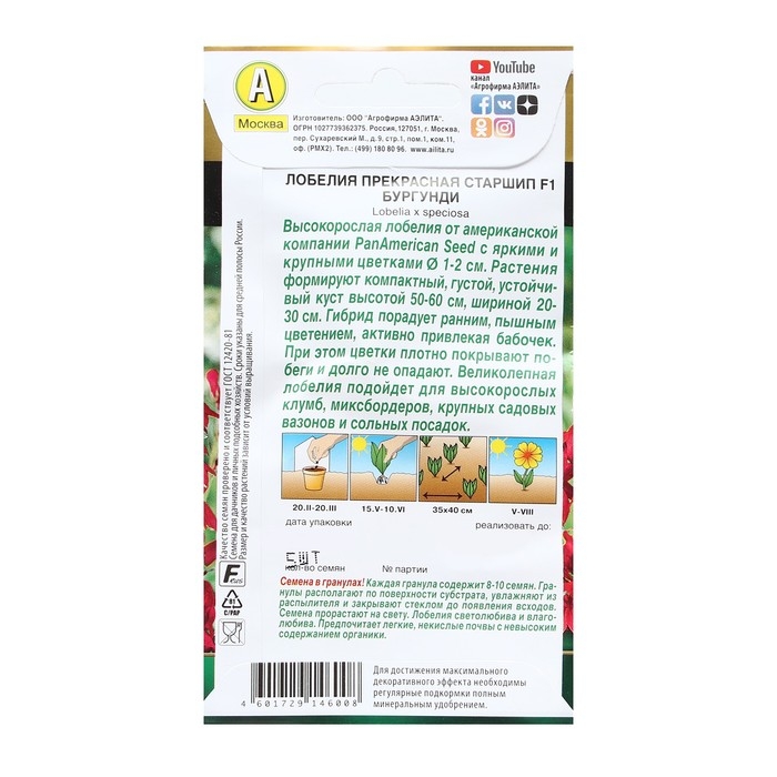 Высокорослая лобелия от американской компании PanAmerican Seed с яркими и крупными цветками Ø 1-2 см. Растения формируют компактный, густой, устойчивый куст высотой 50-60 см, шириной 20-30 см. Гибрид порадует ранним, пышным цветением, активно привлекая бабочек. При этом цветки плотно покрывают побеги и долго не опадают. Великолепная лобелия подойдет для высокорослых клумб, миксбордеров, крупных садовых вазонов и сольных посадок.