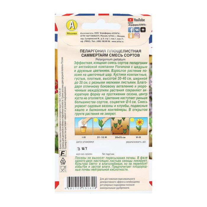 Семена Цветов Пеларгония "Саммертайм", смесь сортов, 3 шт