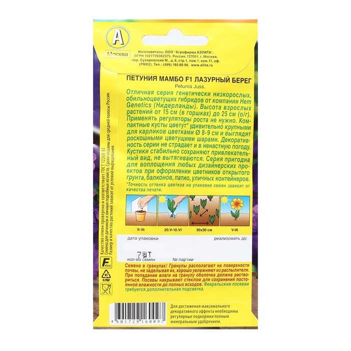 Семена Цветов Петуния "Мамбо", F1, лазурный берег, пробирка, 7 шт