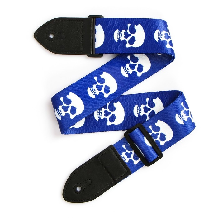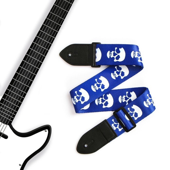 Ремень для гитары Music Life, 60-117х5 см, черепа на синем