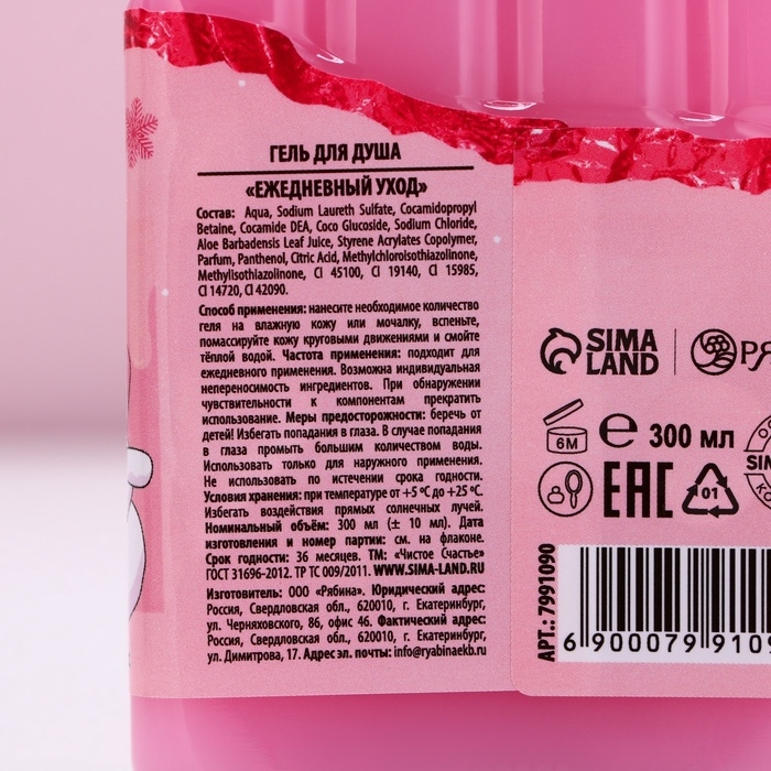 Гель для душа «Привет, Новый Год!», 300 мл, аромат молочного шоколада, ЧИСТОЕ СЧАСТЬЕ