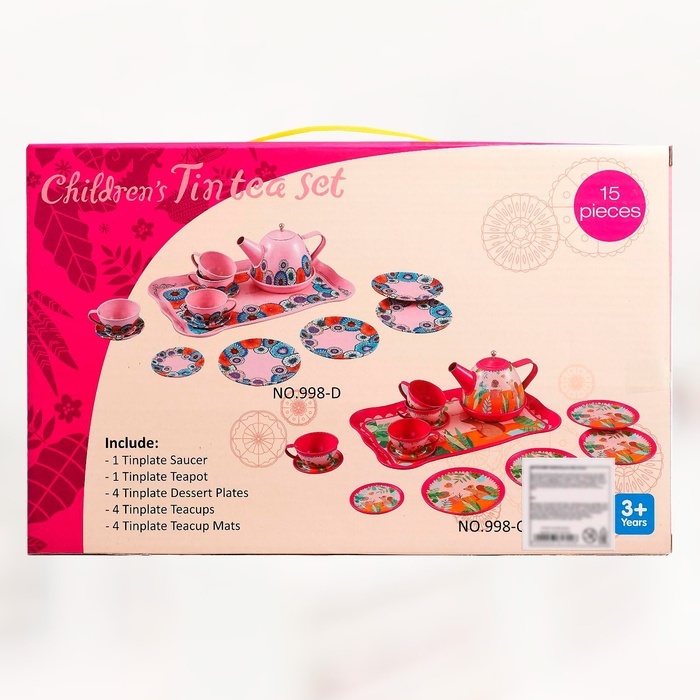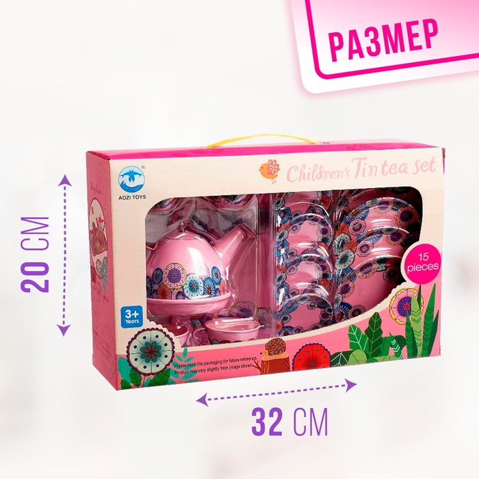 Набор металлической посудки «Чаепитие», состоящий из 15 предметов, идеально подходит для увлекательных игр детей.