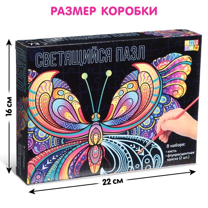 Светящийся пазл «Бабочка», флуоресцентные краски, 73 детали