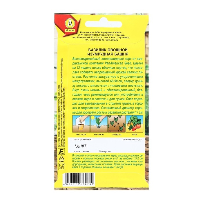 Семена Базилик овощной "Изумрудная башня", 10 шт