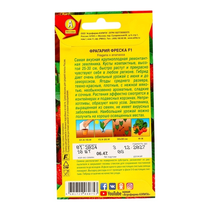 Семена Земляника ремонтантная крупноплая "Фреска", F1, 10 шт