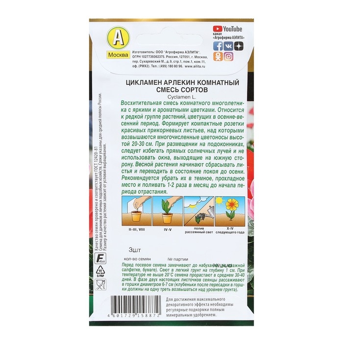 Семена цветов Цикламен "Хельга", персидский, 3 шт.