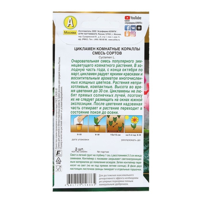 Семена Цветов Цикламен "Комнатные кораллы", смесь сортов, 3 шт