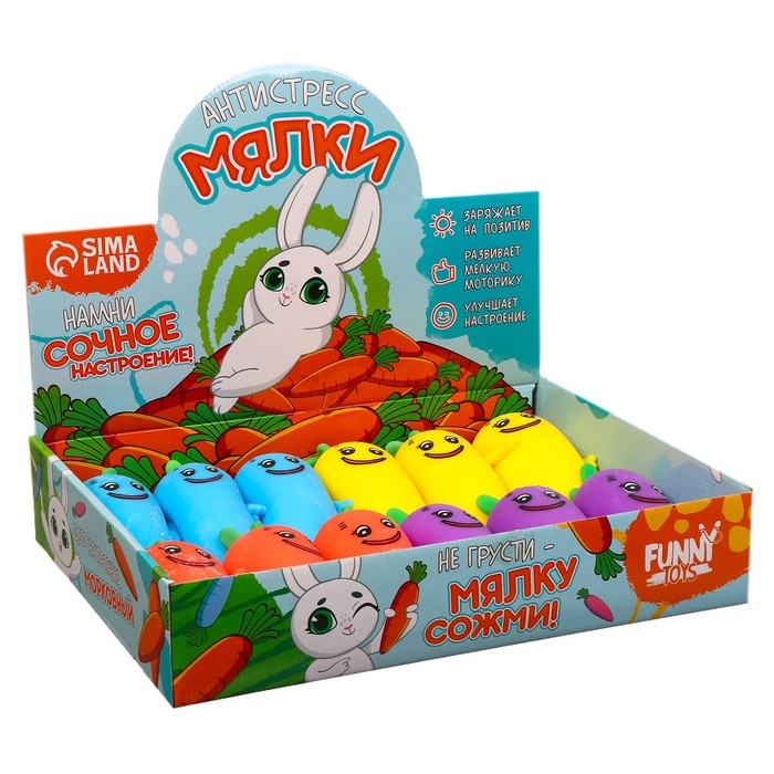 Антистресс сквиш мялка «Морковки», с пастой,цвета МИКС, в шоубоксе, тянучка