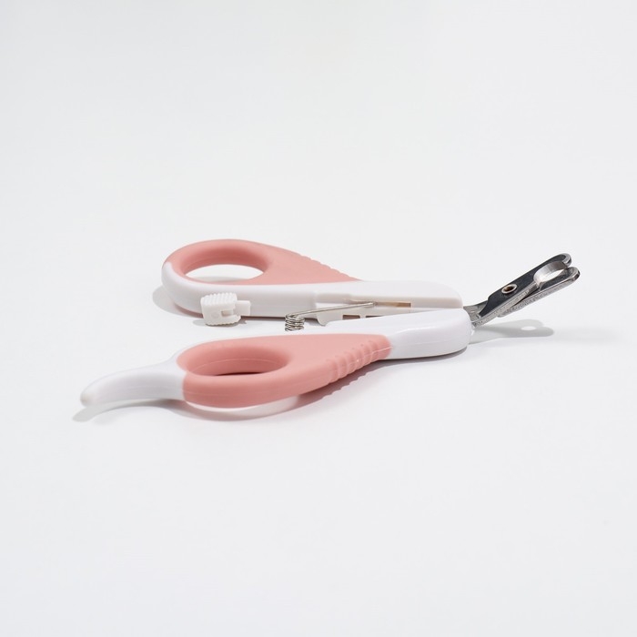 Ножницы-когтерезы с мягкими ручками, отверстие 8 мм, бело-розовые