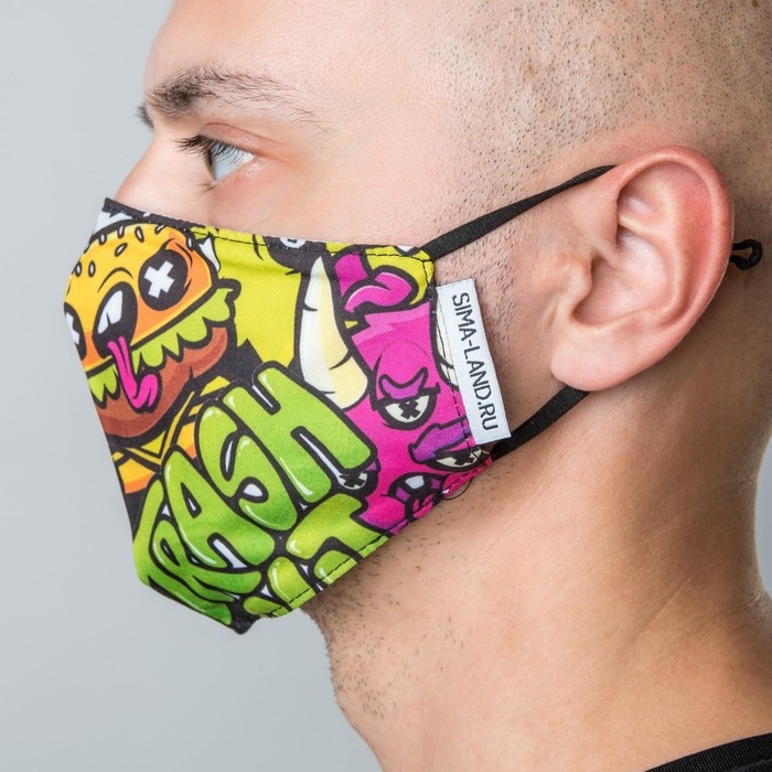 Маска тканевая с регулирующимися завязками "TRASH"